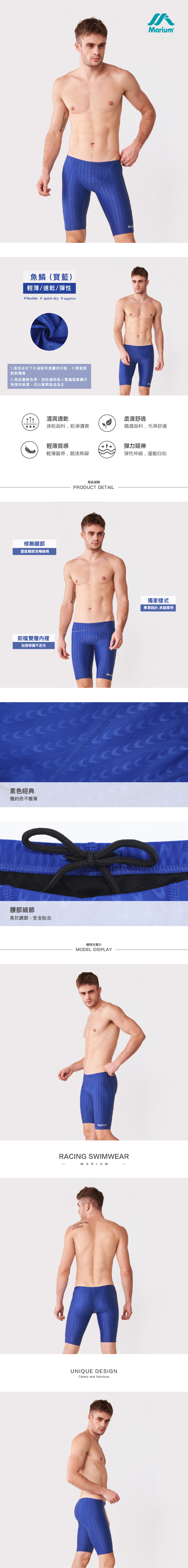 MAR-2140132 大男競賽型馬褲 - 魚鱗(寶藍)