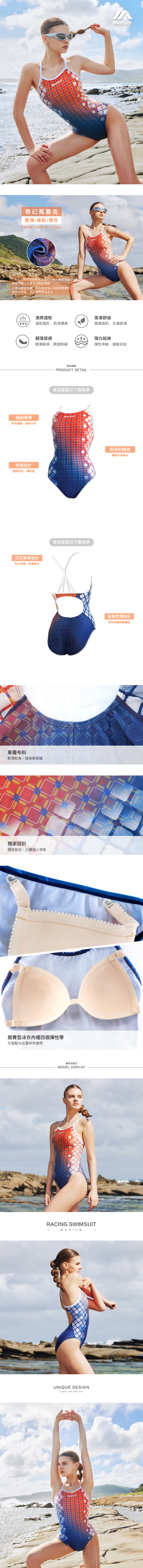 MAR-23080W 大女競賽型泳裝(細肩) - 奇幻馬賽克