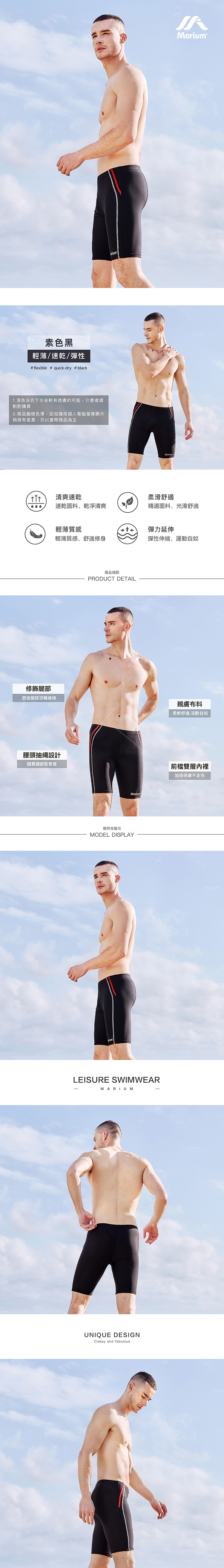 MAR-9163B 大男休閒五分褲─黑